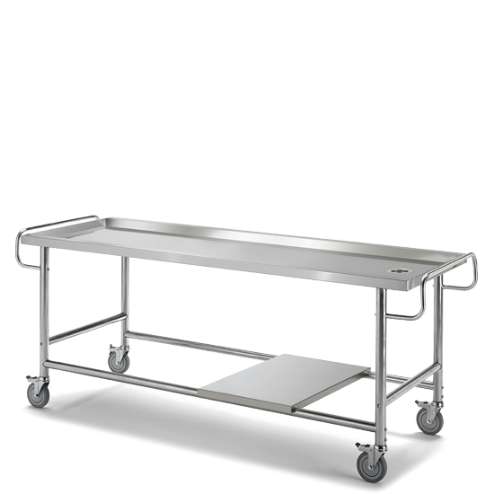 Il carrello porta salme è utilizzato per il trasporto nel reparto ospedaliero sino alla sala mortuaria;